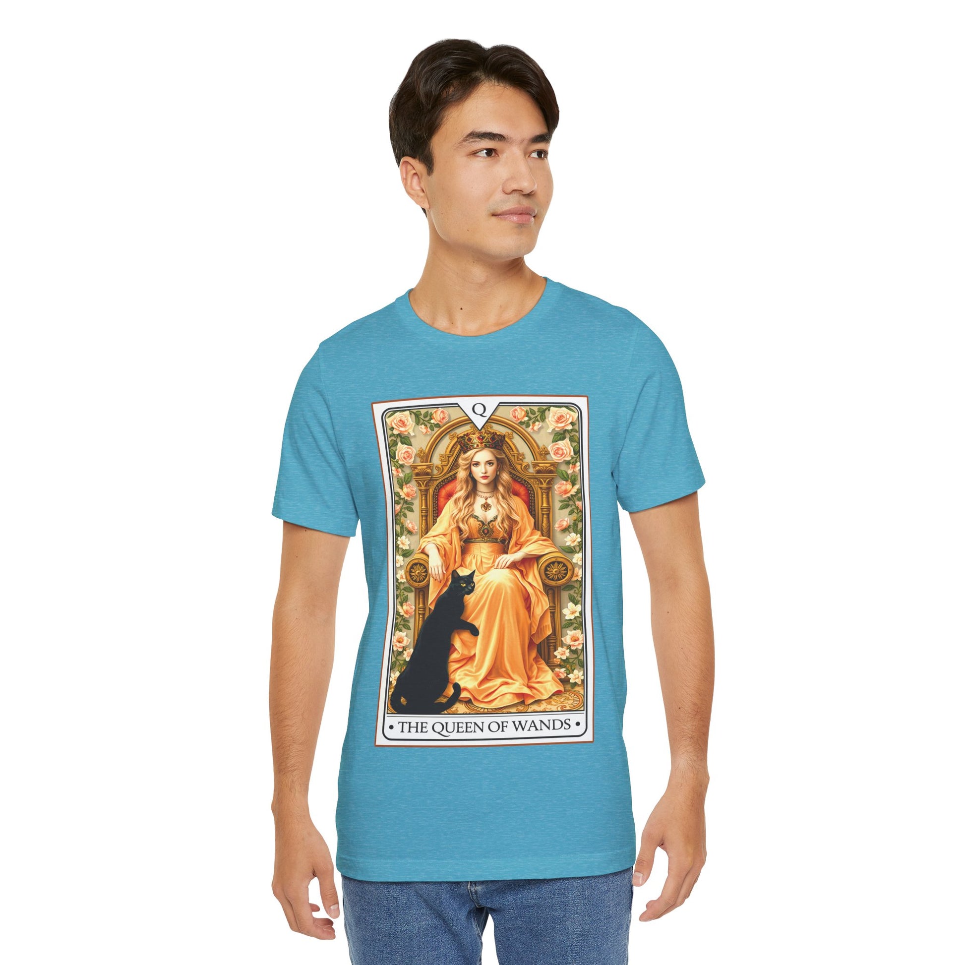 Wear the bold energy of the Queen of Wands. This tee carries the card’s fierce, creative spark — bright, confident, and quietly magnetic. Soft cotton rests against your skin while the tarot-inspired design draws curious eyes: a poised queen, a sunlit wand, and mindful symbols that speak to intuition and self-empowerment. Slip it on for a coffee with friends, a gallery night, or a ritual at home. It feels like stepping into your own story: warm, steady, and ready to make things happen.